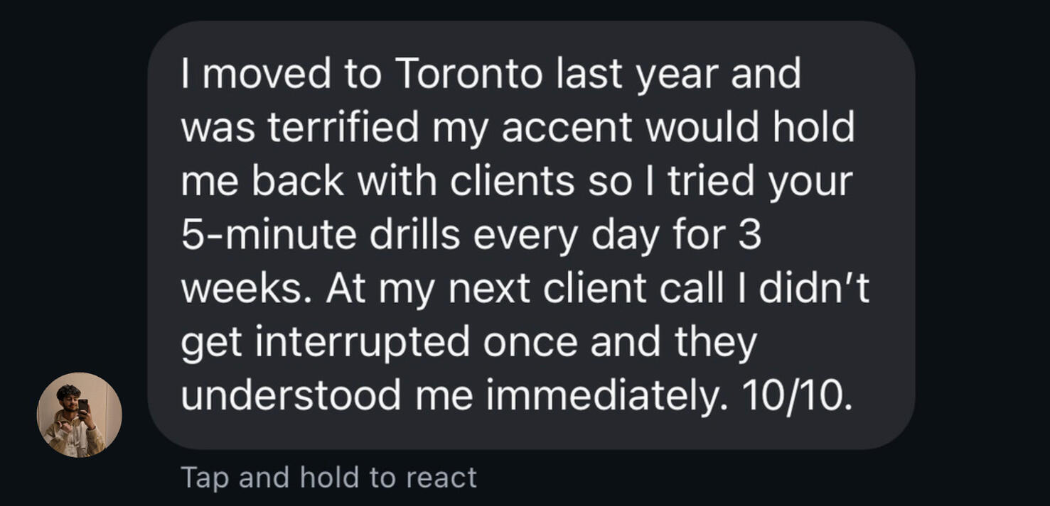You've been speaking fluent English for years. Your vocabulary is strong and your grammar is solid. But when you speak up in a meeting, you see it:😬 "Sorry, could you repeat that?"76% of employers admitted to negative bias against candidates, based on accent.Here's the truth.It's not your English, it's just 5 specific sounds that are getting in the way.